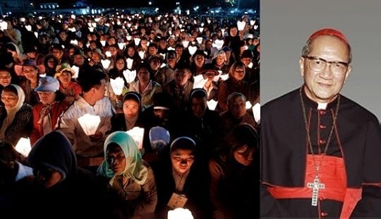 (Left) People hold candles while attending a Mass as part of the holy year celebrations outside La Vang Basilica in Vietnam's central Quang Tri province Jan. 5, 2011. (CNS photo/Kham, Reuters) (Right) Cardinal Francis Xavier Nguyen Van Thuan