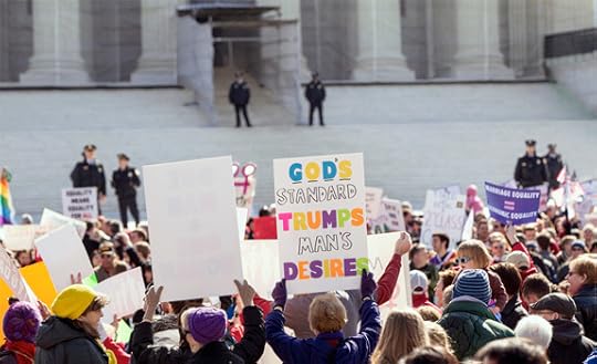 People demonstrate outside the Supreme Court building in Washington March 26, 2013. (CNS photo)