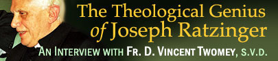 Fr. Twomey is the author of an excellent book about Joseph Ratzinger/Benedict XVI, titled Pope Benedict XVI: The Conscience of Our Age (A Theological Portrait) (Ignatius Press, 2007). Here are links to the book's Introduction, as well as to an Ignatius Insight interview with Fr. Twomey: