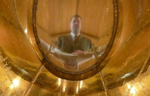 Yesterday, our new adopted youngest son received the Sacraments of Baptism, Chrismation, and Holy Communion. Prior to the liturgy, his godfather, Tony Clark, took this picture of me gazing into the baptismal basin:
