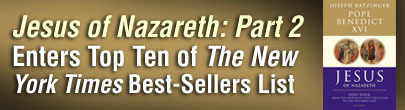 Pope Benedict XVI's new book, Jesus of Nazareth: From the Baptism in the Jordan to the Transfiguration, released worldwide on March 10th, has broken the Top Ten on The New York Times best-sellers list. The book, which has received very positive reviews from Catholic, Protestant, and Jewish leaders and scholars, will be #10 on the March 27th nonfiction best-sellers list.