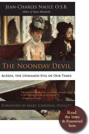 The noonday devil is the demon of acedia, the vice also known as sloth, a combination of weariness, sadness, and a lack of purposefulness. It robs a person of his capacity for joy and leaves him feeling void of meaning. Feel like you might be battling the "noonday devil?" Let Abbot Nault show you the remedies for it in this book.
