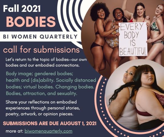 Fall 2021 – BODIESBi Women Quarterly: Call for SubmissionsLet’s return to the topic of bodies—our own bodies, our embodied connections, body image, gendered bodies, health and (dis)ability, socially distanced bodies, virtual bodies, changing bodies, attraction, and sexuality.