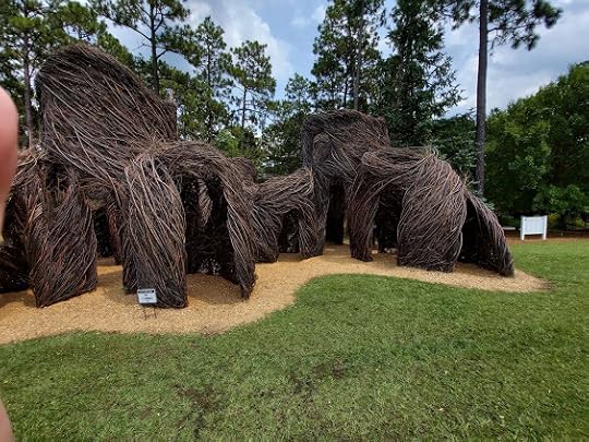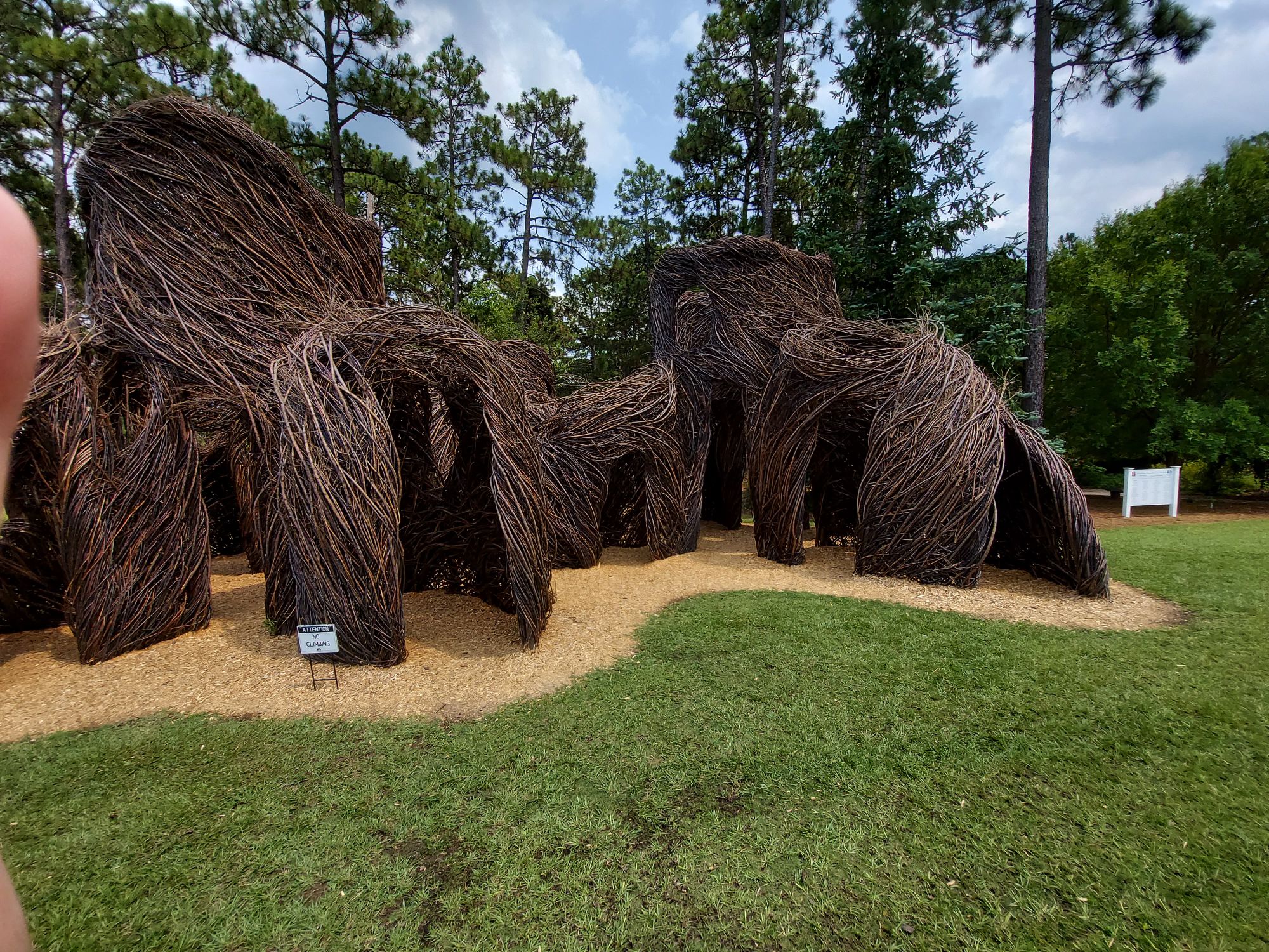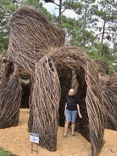 With company in town last weekend, I took some time off from my computer and spent a few days enjoying my adopted state of North Carolina. One of the places we stopped at was the Ball Garden at the Sandhills Community College, where an art installation had been erected several weeks ago and was causing quite the buzz. By weaving together different sized branches and sticks, rooms were created out of nothing.