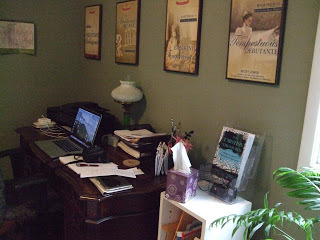 Now, the puzzle pieces are invading my personal life. As most of you know, I've had some medical issues, and the decision was made to move my bed from the second floor. The only place it would fit on the first floor was my office–that sanctified space where all of my books have been written. Now, the desk is shoved up against the wall and my bed takes up most of the room. I'm still trying to get the edges to match up.