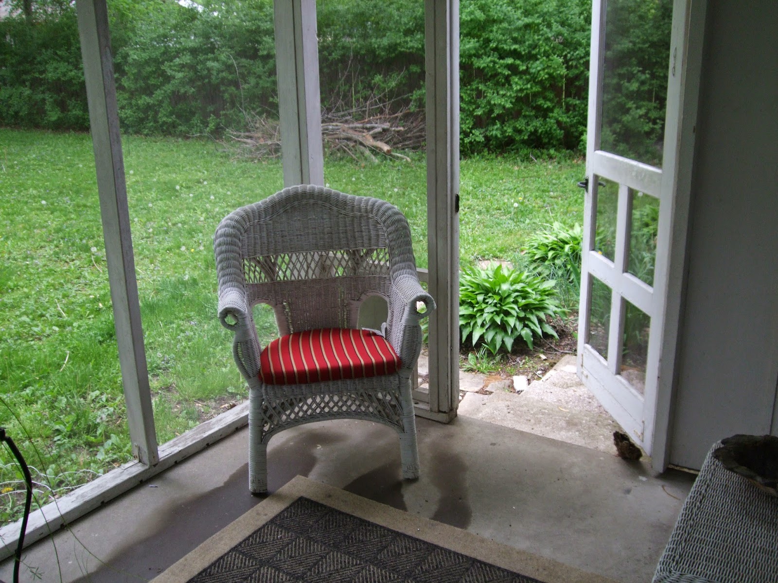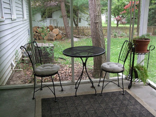 As most of you know, I've got a couple more weeks to be housebound wearing my brace and walking around in a nightgown, since that's the only thing that fits. My inactivity was beginning to wear on me, until yesterday. That's when the outdoor furniture finally got carried up out of the basement and the screened porch was put together. I now can sit out on the porch with my computer, working while I'm watching the birds in the yard, and inhaling the scent of freshly mown grass. It certainly has done wonders for my psyche.