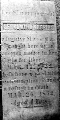 Last week, I had lunch with Darlene Colaso, who works for the City of Oberlin. One of her jobs is overseeing the development of the Center for the Underground Railroad. While we were talking big picture, she mentioned a little boy slave who, in 1853, was too sick to travel on with his family to Canada. The family was still in danger, with their owner coming after them, so they had to continue on to Canada. Little Lee Howard Dobbins was left behind in Oberlin with some good Samaritans and died just days later. It’s only one little story in the overall complex problem of slavery and the incidents leading up to the Civil War, but the way the town reacted touched my heart. A service was held in First Church, which still exists, for this small boy who nobody knew. More than one thousand people crammed into the church, to honor little Lee Howard Dobbins. Each person gave what he could (the recommendation was ten cents each), to pay for a gravestone for him. The words carved into the stone are Let Slavery Perish! and then tells the story of Lee Dobbins, and how his flight to freedom ended in Oberlin.