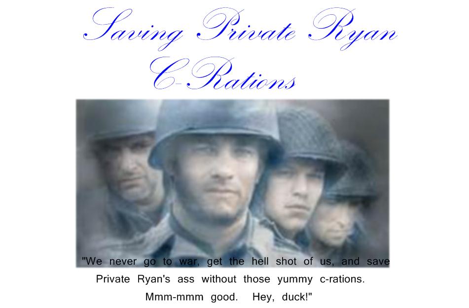 everyone frickin' dies except stupid Private Ryan.Of course, I'm compelled to throw in something from my favorite movie of all time. (I don't know how the movie studios missed out on this advertising extravaganza!)