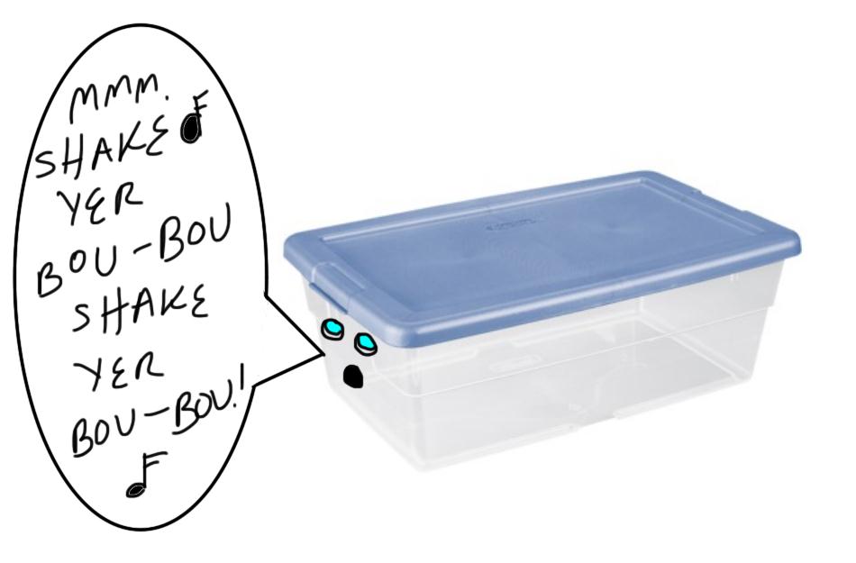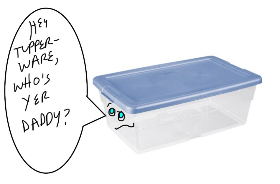 Bin: "That Tupperware container on the counter has been winking at me. I think I could hook up if you moved me closer to the counter."