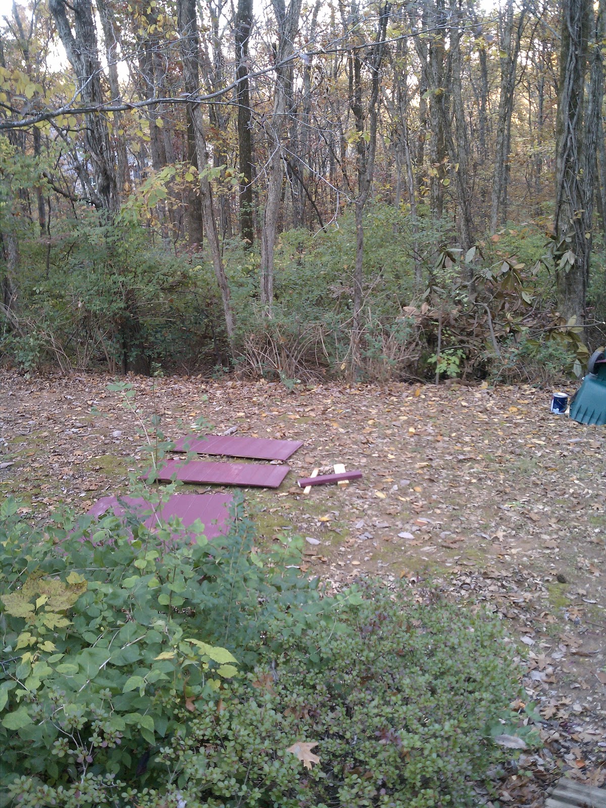 Fat Woman did not feel like putting the bin up. Furthermore, Fat Woman's back had suffered through the building of Tree House I and Tree House II and her sciatic nerve was screaming, "Eff YOU! We ain't putting no stinking plastic bin up!" Therefore, the plastic bin sat on the rug next to the dining room table. And sat there. And sat there. For five weeks. FIVE WEEKS! (I started marking the days off on my calender.) No one said anything. No one moved it. It just sat there, growing moss on the top. (Or algae. Or dust bunnies. Something. I certainly wasn't going to move it, much less dust it.)
