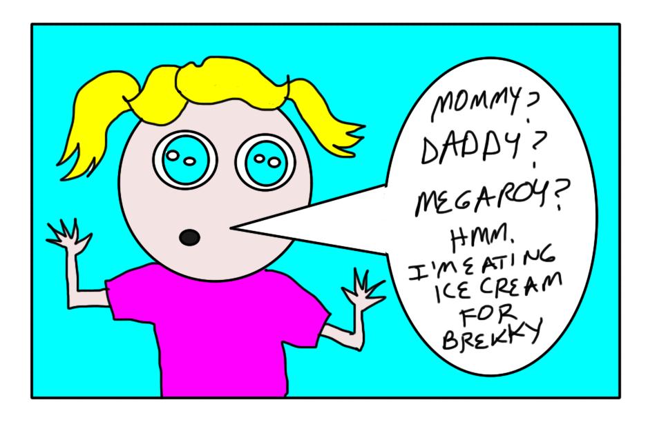 Daddy got into it. "What about Megaroy? Who would take care of him?" (Megaroy, for you blog neophytes, is my daughter's moron cat. He is, really, a moron.)
