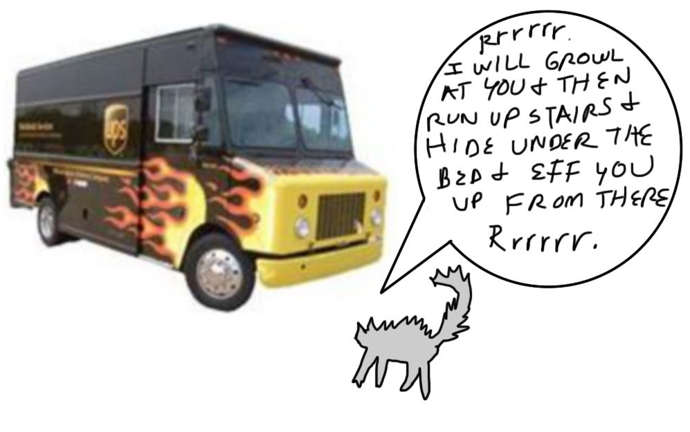 Okay enough of that. It's making my stomach hurt. Time to go find the Pepto-Bismol and hope for the best. Plus the Moron Cat is now growling at HIM as HIM walks down the driveway.
