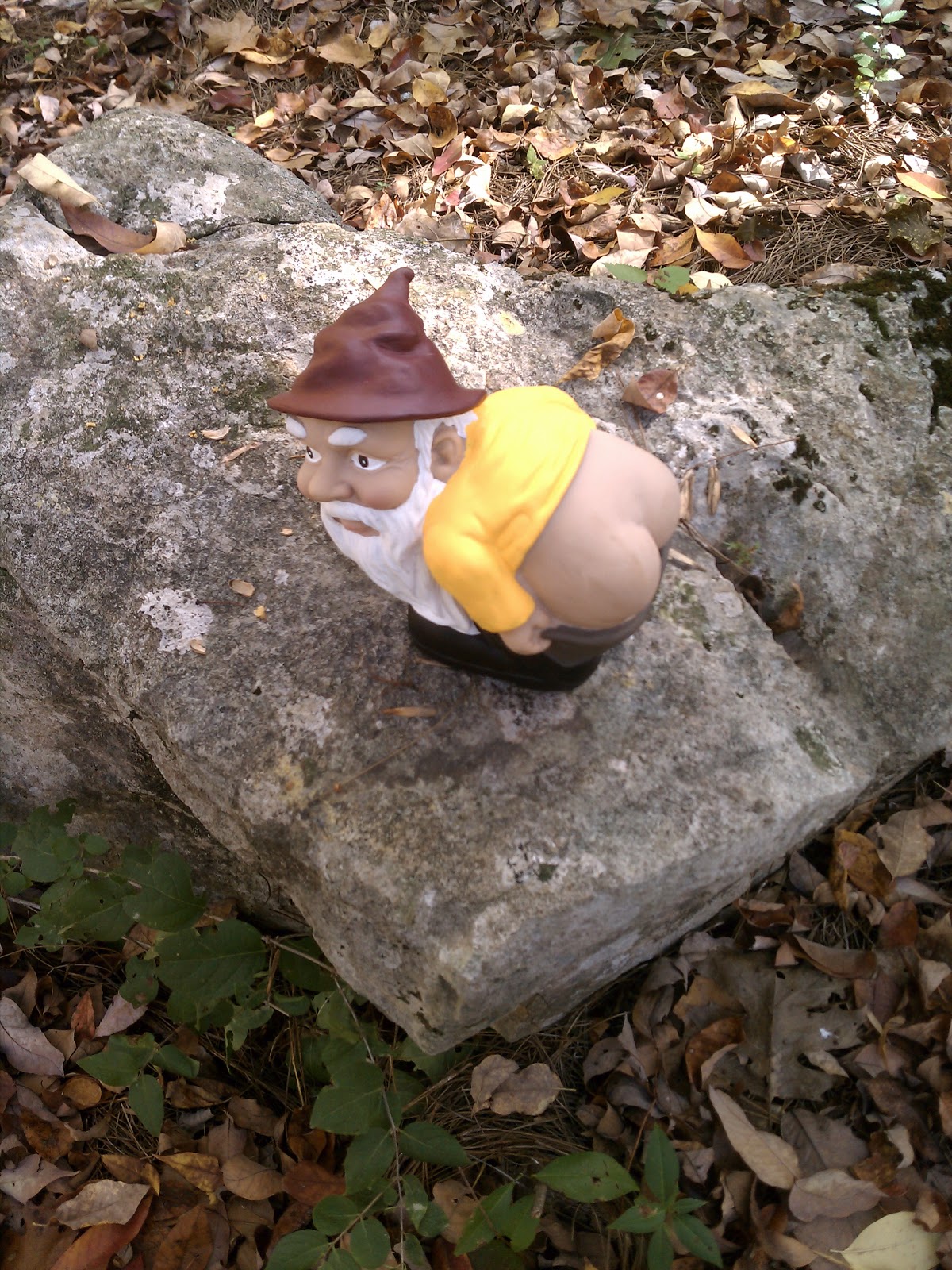 I placed this gnome squarely where they wouldlook out the window and admire it.3. Tree House II is under construction in our back yard. Today I poured concrete into the footers. That effing tree house won't be coming down unless the Mayans were correct. Does everyone know that they make concrete that you don't have to pre-mix. In fact, the stuff sets up in fifteen to thirty minutes. Believe me, you have to work fast. Does anyone know how to get concrete out from underneath your fingernails? (If anyone asks, I'm saying it's a special Halloween look and concrete was involved with dealing with my new, special neighbors.) (Okay, is anyone going to comment that I don't seem to get along with my neighbors? Well, I get along with some of them. The ones who don't let their dog poop in my yard, tell me that it's my fault their 13 year old daughter lied about me, and the ones who don't complain about a perfectly good tree house. That narrows it down.)