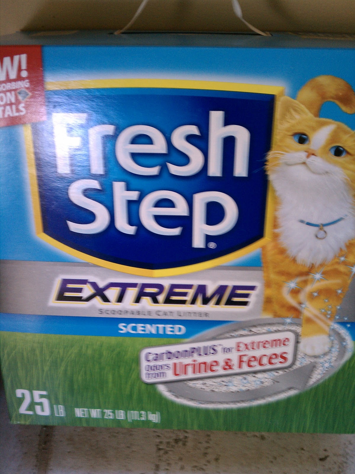 I'll point out the pertinent words. Fresh Step EXTREME. (They heard about Megaroy. But they forgot to call me.) It has CarbonPLUS tm for Extreme odors from Urine & Feces. See. Totally for the cat in our house. We'll see. We WILL see.