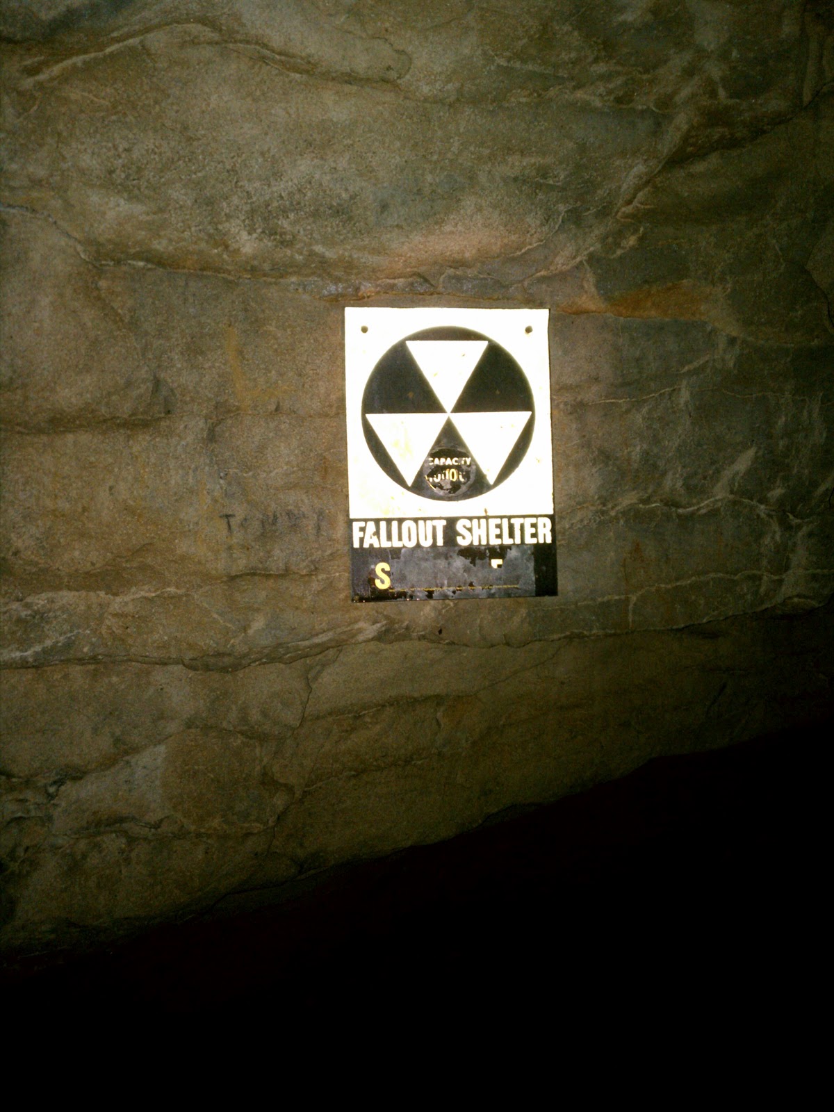 We did see the nuclear fallout shelter sign in the cavern. So if a nuke fell we were in the right area. Yea! We would survive nuclear Armageddon. We would protect our cavern from the glow-in-the-dark zombie annihilation to come. We would eat cave spiders and...I'm wandering again, aren't I?