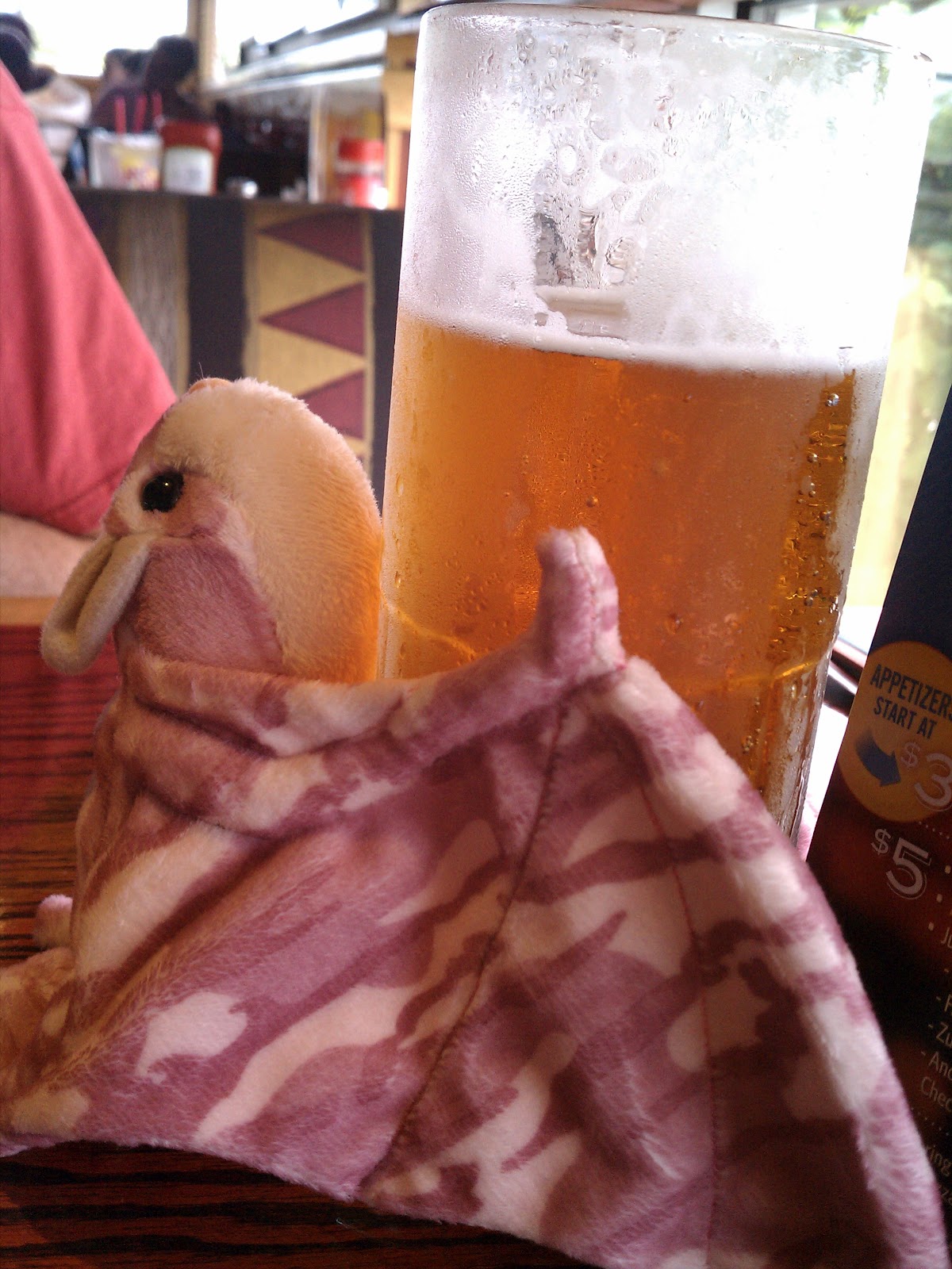 The bat wanted to drink a Screaming Bloody Zombiebut she couldn't show her driver's license.More cavern induced zaniness followed.