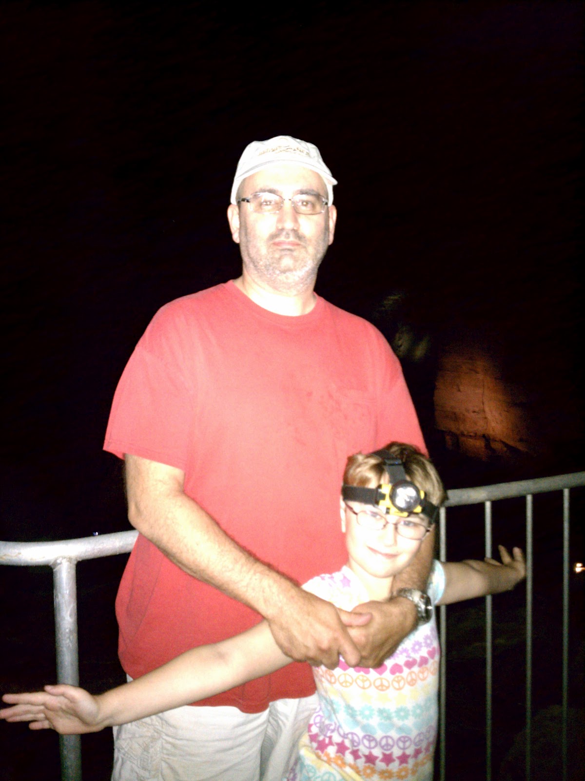 and I don't mean HIM.Cressy, our eight year old daughter and would be spelunker, was excited. Caves were meant to be explored. OMG, there was a cave and we were there. Soon we were joined by fellow parental brethren, whose children looked enviously at Cressy's headlamp. (But the gift store sold hard hats with lamps for $13.95 so they had to break out the credit cards.)