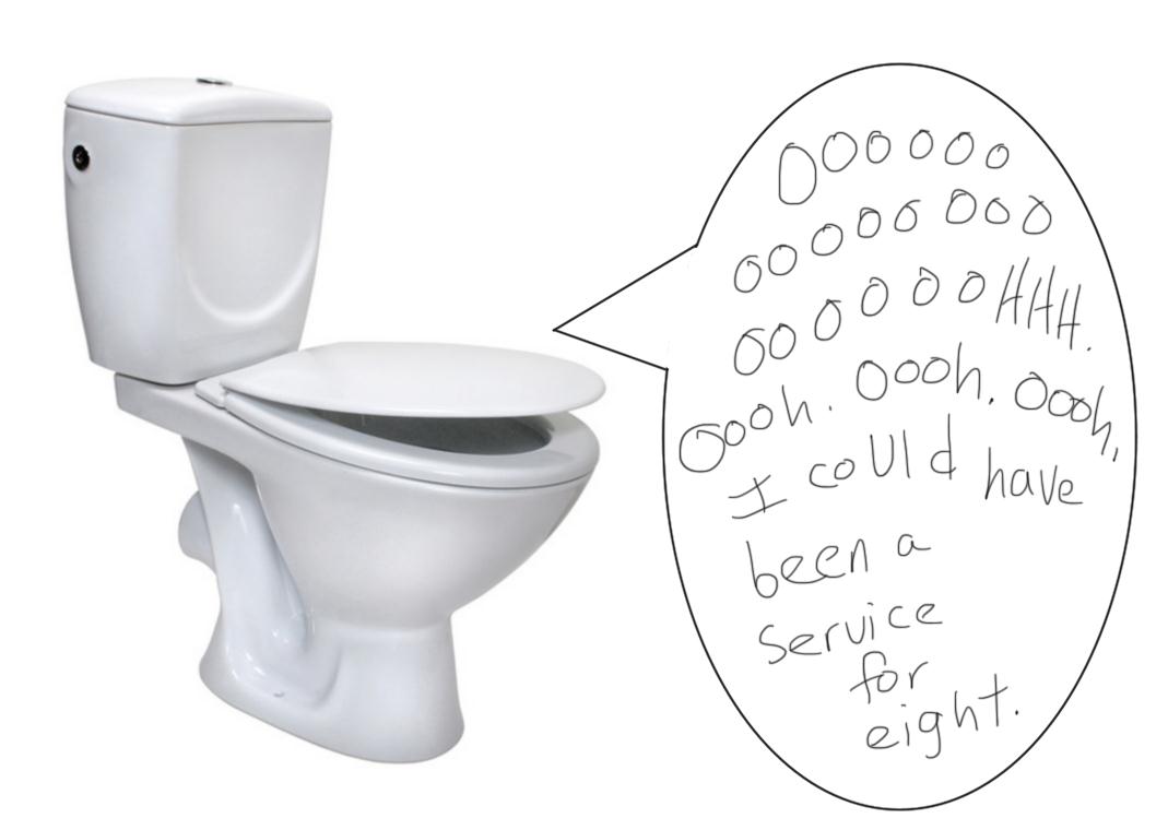 So this course of thinking got me to wondering what a toiletwould say, if a toilet could speak, which results in