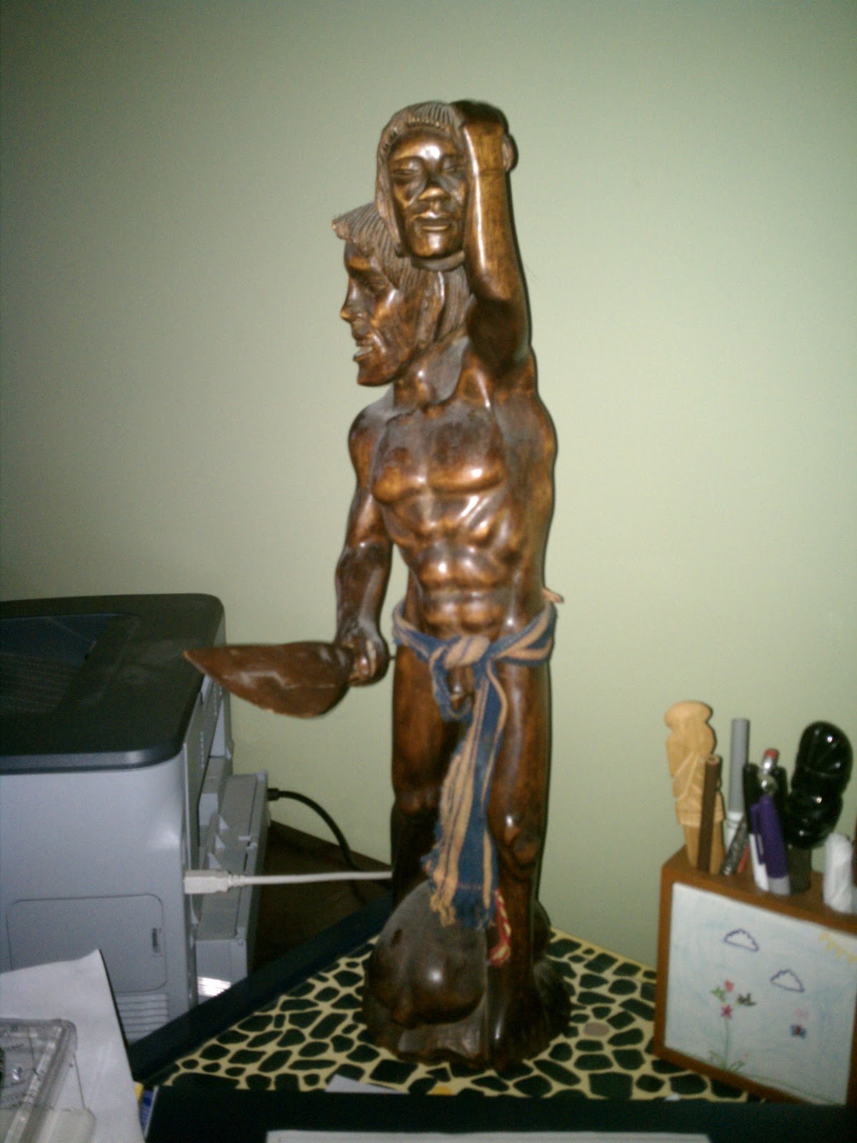 Everyone within a mile radius would have heard the scream.But hey, look what I did find. This is the statue of a head hunter my parents brought back from the Philippines about forty years ago.