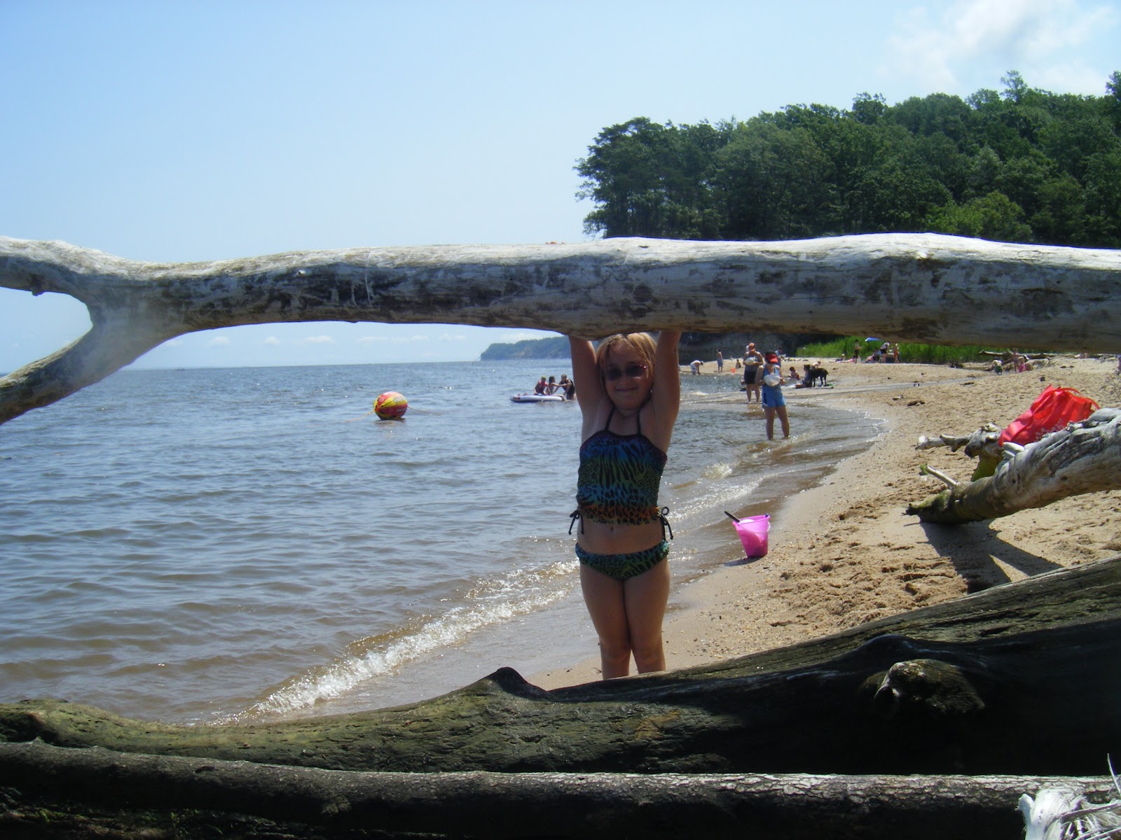 Cressy rediscovering the water for summer.Yesterday we went to Westmoreland Park in Virginia right on the Potomac River. There's fossil hunting there. Apparently everyone else knew about it too. The ones who didn't know about it were on the road in front of me, especially the more moronic ones. In fact, no one needed to ask where all the morons went yesterday on that two hour segment of time. They were all in front of me. Every one of them. They got together and decided to do this in honor of me. I'm pretty sure. Back to the fossils. We found a lot of gritty sand, a very pretty park, some pretty shells, a heart shaped rock which I'm pretty sure isn't a rock at all (it's going to vanish mysteriously very soon because it's way too light to be a rock, do you get where I'm going?), and two little rocks that may or may not be fossils. That beach has been picked clean. I think if anyone found a shark's tooth, they'd get jumped by all the other fossil hunters. On the up side, it's a pretty park, we had a nice hike where I didn't have a heart attack, and we did something fun, no matter how snarky I am about it later.