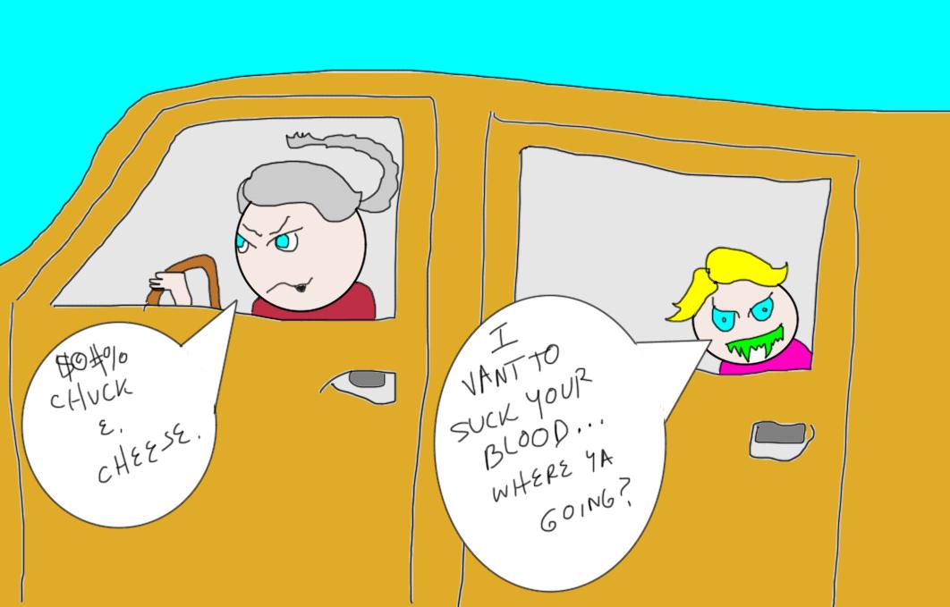 Yes, this looks exactly like my Ford.On the drive home, my daughter became the vampire of the Ford Explorer. Several times she leaned out the window to menace other drivers with her glow-in-the-dark vampire teeth. Although it was daytime, she was not deterred by the lack of glow-in-the-dark-edness. She was having a whole vampire moment. And it didn't stop when we got home.No, Cressy the Vampire had a new victim. Megaroy, her moron cat, was sleeping on top of his kitty condo, resting from the aftereffects of too much catnip, when suddenly, Cressy the Vampire crept toward him. I mean, I think he noticed her but he's used to her creeping toward him. Neither was he impressed by the glow-in-the-dark vampire teeth. (Cressy the Vampire had to pause mid-creep because the glow-in-the-dark vampire teeth were making her drool down the side of her face. So she wiped with her sleeve. Do we do manners in this house? Oh, yes, she could have just spit, like most vampires do.)