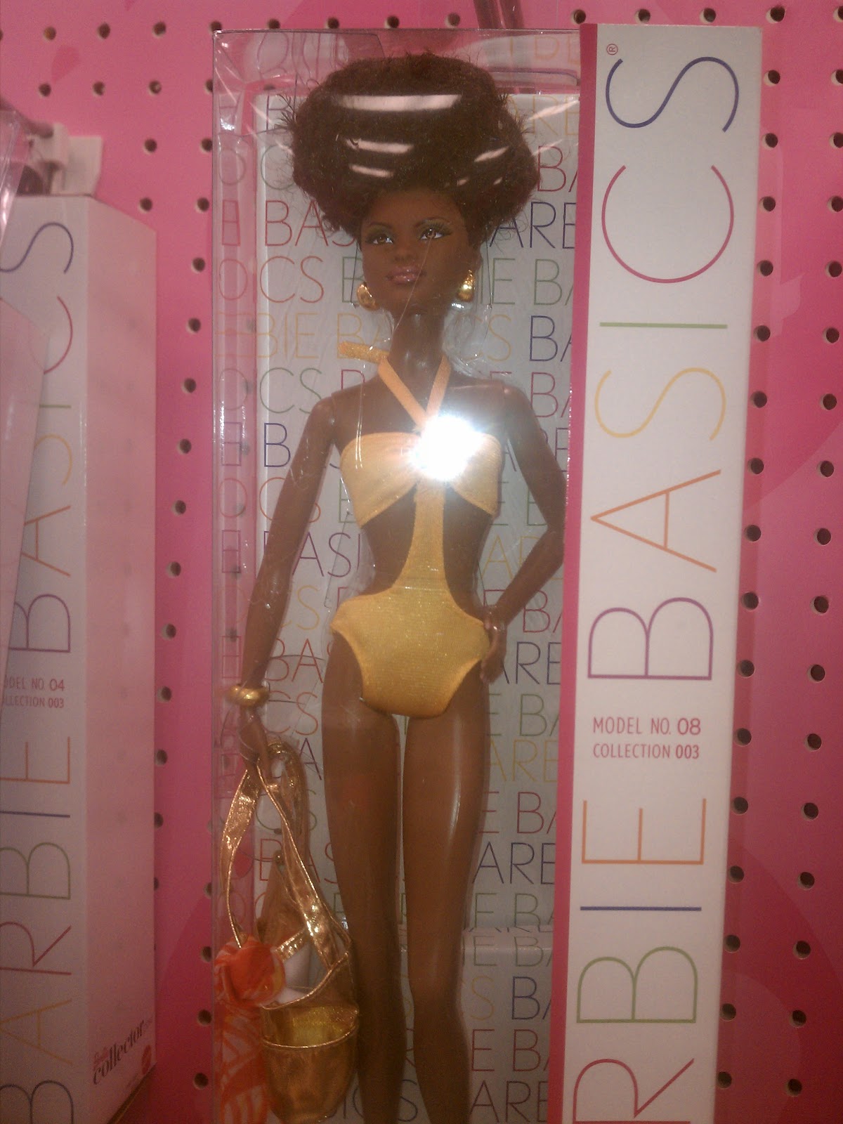 In the same, special section for Barbies, I saw this one and well, I'm thinking maybe Mattel's trying to tap that 70s blackplotation market or something, but wouldn't they have a guy dressed like Superfly or Blackula instead? Mattel, seriously? Dolls from the fashion hood? (Whoops, did I cross the line? Well, it wouldn't be the first time and I'm pretty sure it won't be the last.):