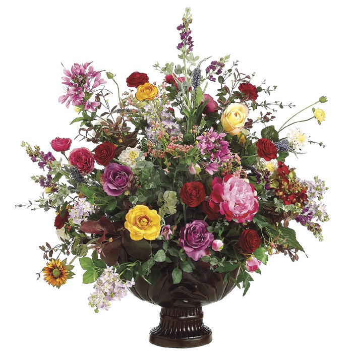 Pretty flowers. Large arrangements are acceptable. Silk flowers might be better. They won't wilt. A single flower in a cruddy vase = badness and divorce threat no. 44. I prefer the color red but all types are acceptable except the type extracted from a local cemetery.