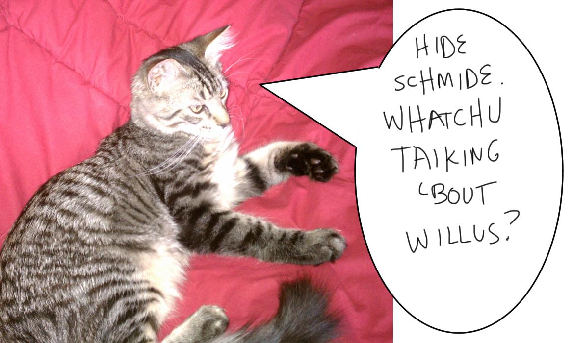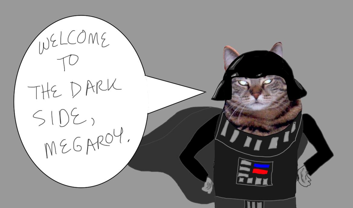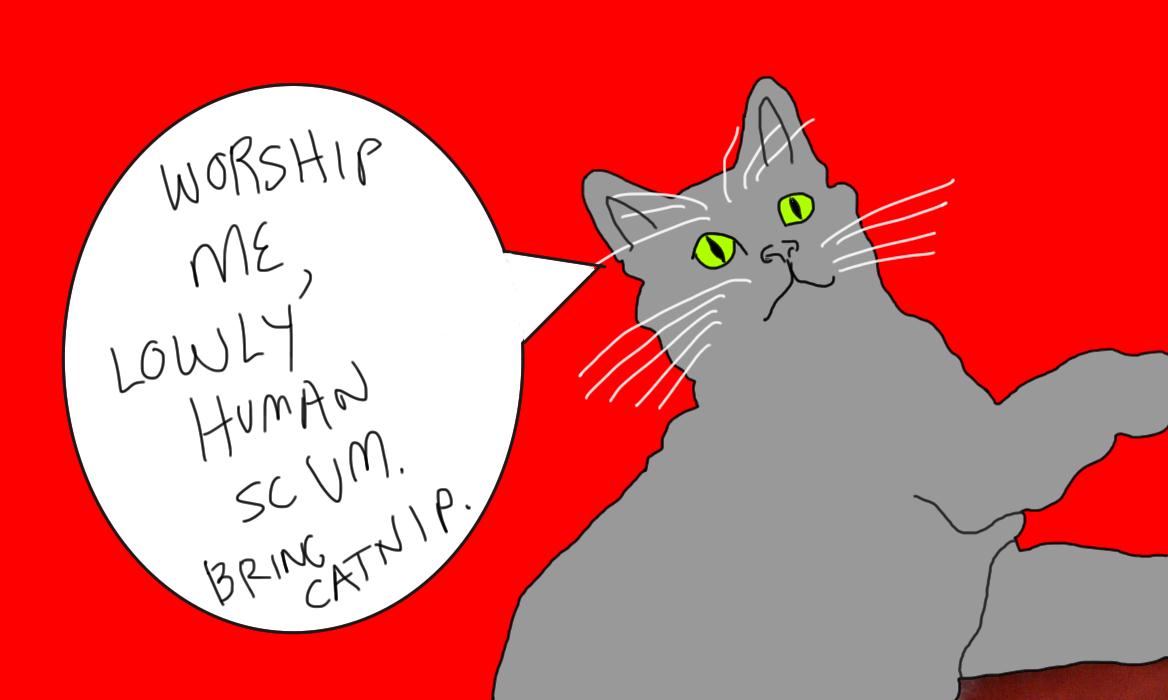 Megaroy, my daughter's cat, whom I can't seem to NOT blog about, is very popular right now. (Someone stop me before I blog about the stupid cat again!) He's loads of material for me and I didn't even want a cat again. (I wanted a Pygmy Walrus with pink stripes in his mustache. Or some more beta fish. Whatever was easier and let us come and go at will. Hahaha. I lost that battle. And guess who the cat spends the most time with.) (He likes to sit on the laptop's keyboard and make up nonsensical sentences. Also he's learned to change settings on my computer without having an IT degree. Why me?)