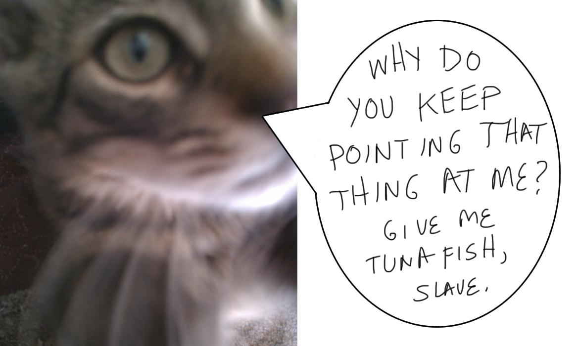 I know this is out of focus but the cat doesn't know howto stop moving, especially if you're pointing