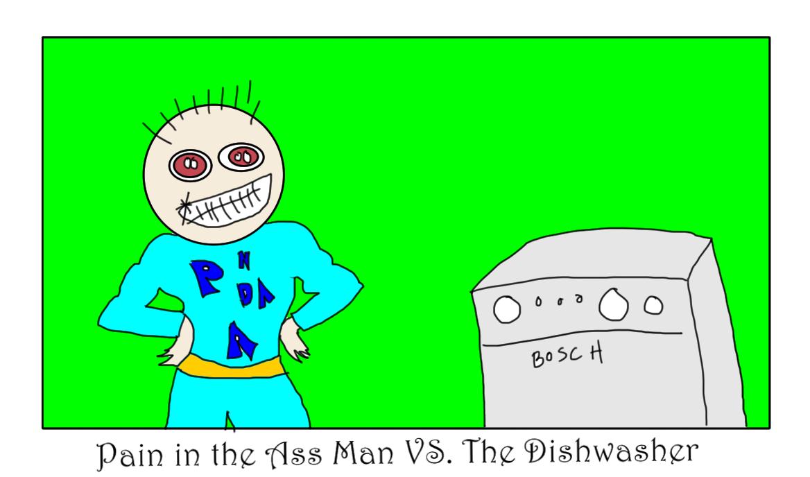 happens in my house every day of the week.So my dishwasher is still broken. Well, semi-broken. It washes and washes and washes and washes and after about two hours, it's still going, so you have to go turn it off and have it drain manually. But Pain in the Ass Man aka Butt Crack Man aka HIM, the man to whom I'm married and of whom I blog about excessively, says, "I can fix it."