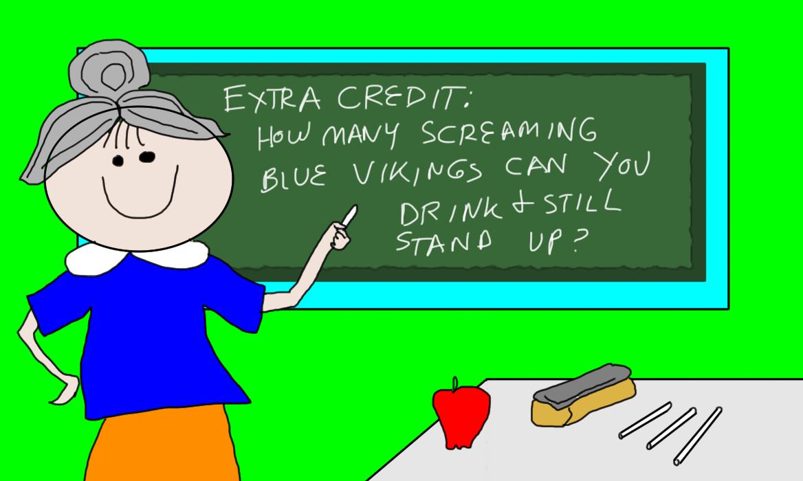 I need a Screaming Blue Viking.Do I really think the teachers are chugging while on