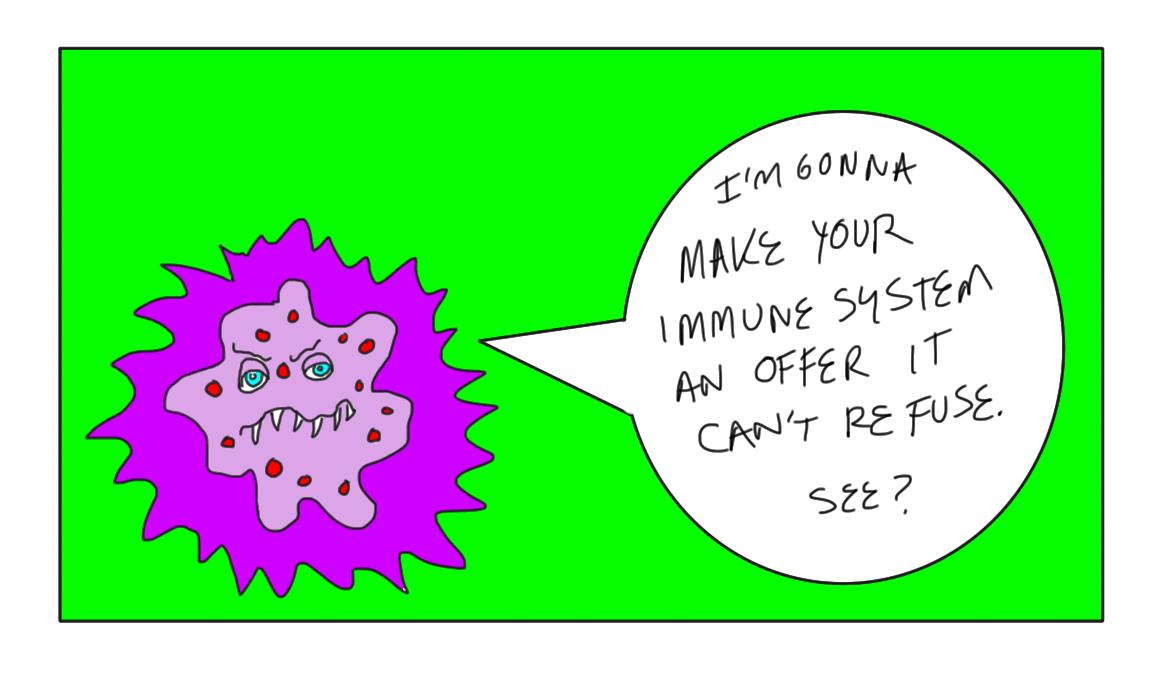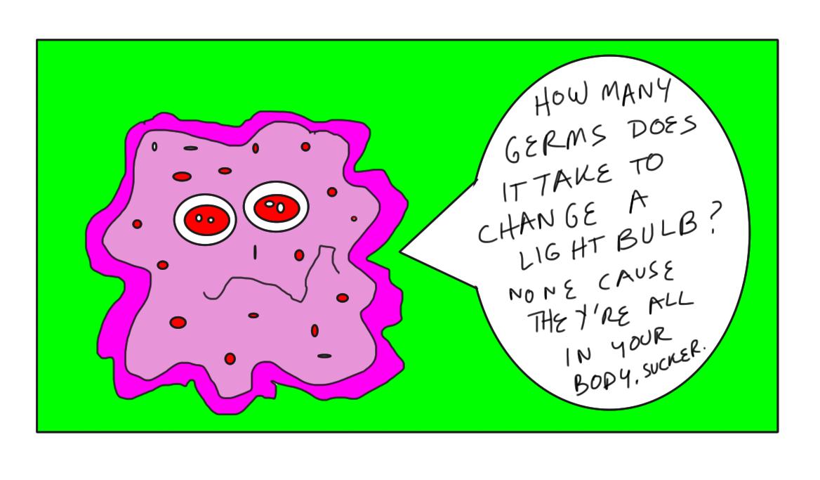 Next up, your common everyday comedian germ. He's appearing every night this week in my body. Whether I like it or not.