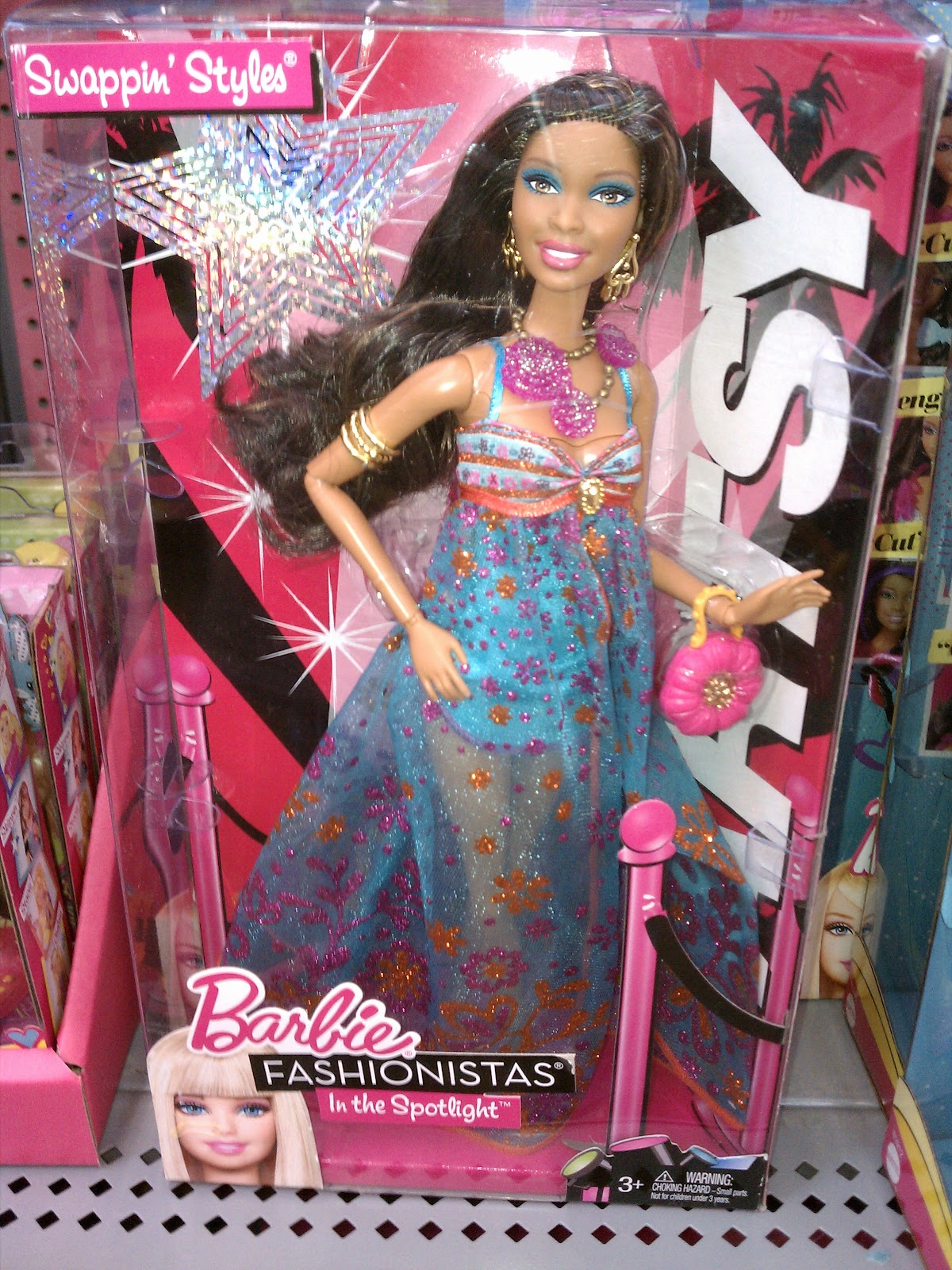 I'm not sure if my Droid captured the essence of this one. She's supposed to be like, all Hollywood, and maybe so, but she looks like I'm-off-to-be-a-Concubine-Girl with the see through outfit. I'm surprised Mattel didn't provide double-sided tape for the breast area and maybe extra tape so your budding Harem girl could practice with it, too. After all, we can't have our boobies popping out at the wrong time when wearing outfits that are less than, shall we say, supportive?
