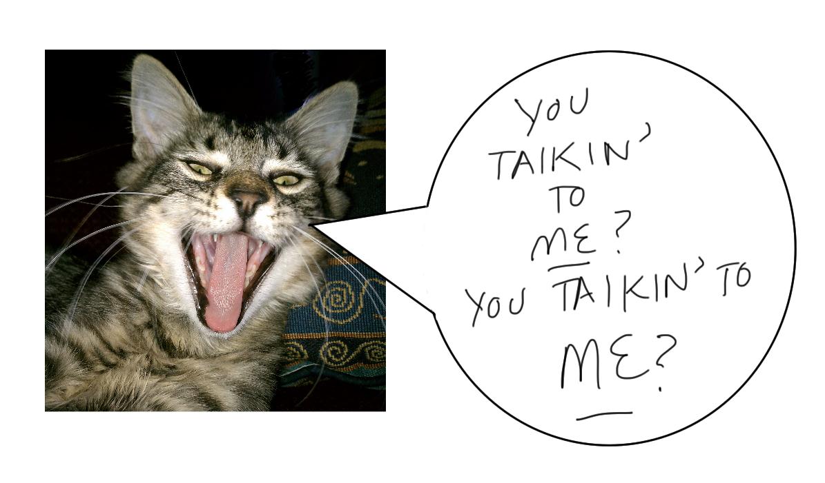 Well, that just about says fooking everything. There's a little gray cat in the house somewhere complaining that my daughter is carrying him in an awkward manner and he's about to get his little claws out and show her who's the boss, so I'm outta heah. (Maybe I should put quotations around "outta heah" so I won't get a complaint about that, too. Oh, the fook with it.)