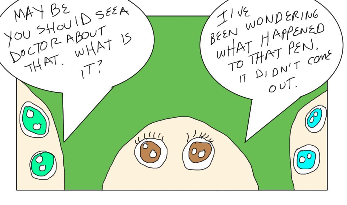 I see the pen. Also I see massive depression and two dogs playing ping pongwhile playing pinochle. (I was just playing with some Rorschachs's cards. If