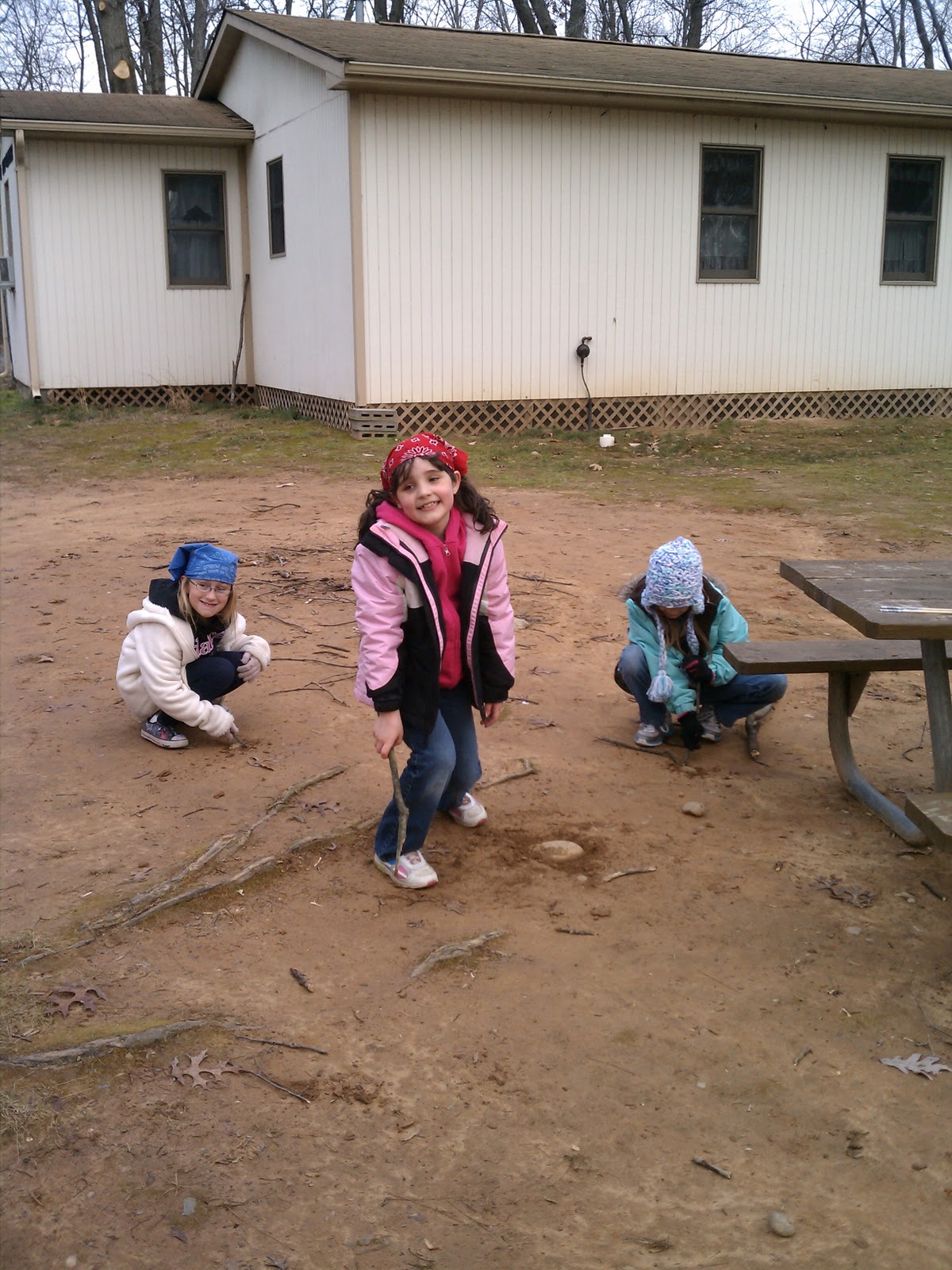 budding archaeologists, paleontologists, somethingologists.)Meanwhile, back inside, Super Moms were cooking of the dinner. There were noodles, spaghetti sauce, carrots, and other stuff. I'm not sure how the older scouts got a different menu but it turned out they had hot dogs and quesadillas roasted on the fire. (Cheese quesadillas on the fire in aluminum foil for all you naysayers.) Well, the sight of hot dogs pretty much melted all the younger girl's brains (kind of like the cheese in the quesadillas) and they all wanted them, so we had a lot of noodles and sauce left over. (Which was a shame because it was tasty, although I had to cook one batch twice because I made the mistake of not checking the al dente-ness of it before draining the entire batch. Hey, al dente-ness could be a word. Anyway, don't pour the boiling water out until you're sure the noodles are done. Just sayin'.)