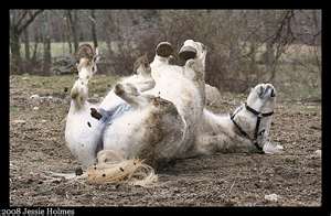 Okay, I couldn't find TWO white horses rolling in the mud, butI think this illustrates my point.