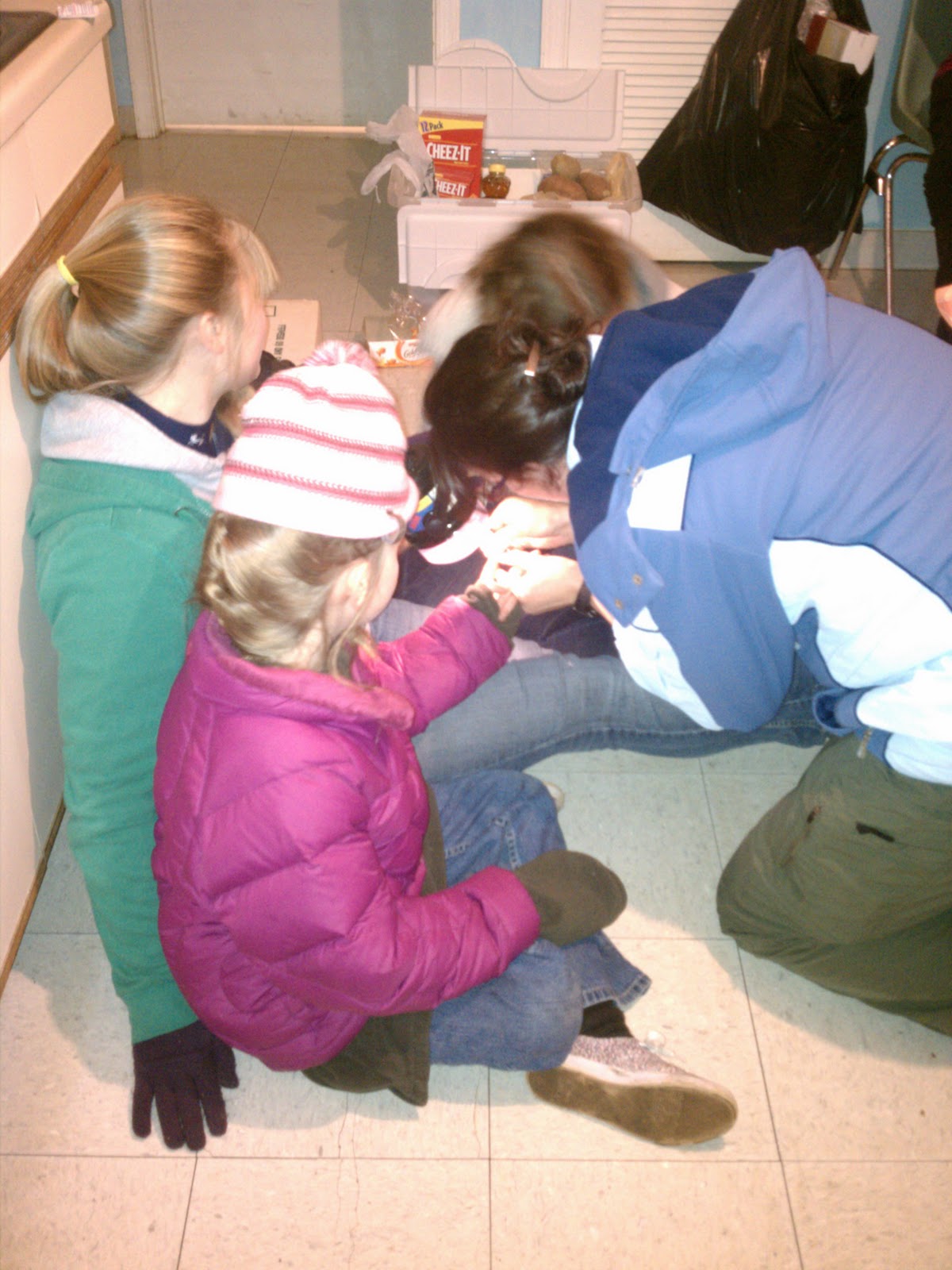 You wouldn't believe how worn out everyone was at about 4 pm. We were all whipped. Little girls wanted to put pjs on and climb into sleeping bags because they were pooped. They draped themselves on their little sleeping bags and moaned their discontent, until the troop leader popped out another craft project, whereupon they jumped it upon as if they were lions and the craft project was a hapless antelope. (Really. It happened.) Then, they returned to being tired.