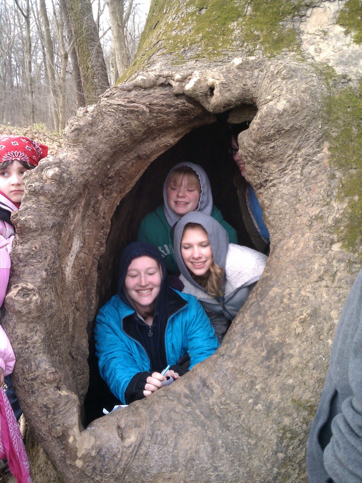 One little girl was smart enough not to want to gointo the big bleeping hole in the tree.The older scouts then fell into the hole. I had a strong urge to run and leave the kids in the hole in the tree but my conscience kicked in.