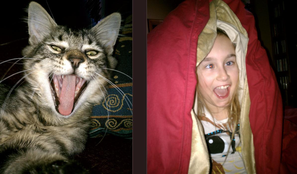 Megaroy. I know. I've mentioned it before. My daughter named the cat, Megaroy. (Megaroy. It sounds really weird if you keep repeating it. Try it. Like ten times. See. Weird. Megaroy. Megaroy. Megaroy. Megaroy. Megaroy. Oops. My brain broke.) I asked her what that meant and she said she made it up. Then she changed it a few times. Megaroy became Riki-tiki for about ten hours. (Thanks to my husband's predilection to Rudyard Kipling, although Cressy certainly didn't appreciate that the cat does NOT look anything like a cobra munching mongoose.) (My suggestion that the cat be called Dorkus-malorkus was disregarded as offensive to all cats everywhere.) (Whisper from the side of Cressy's mouth, "You'll hurt his feelings, Mommy.")