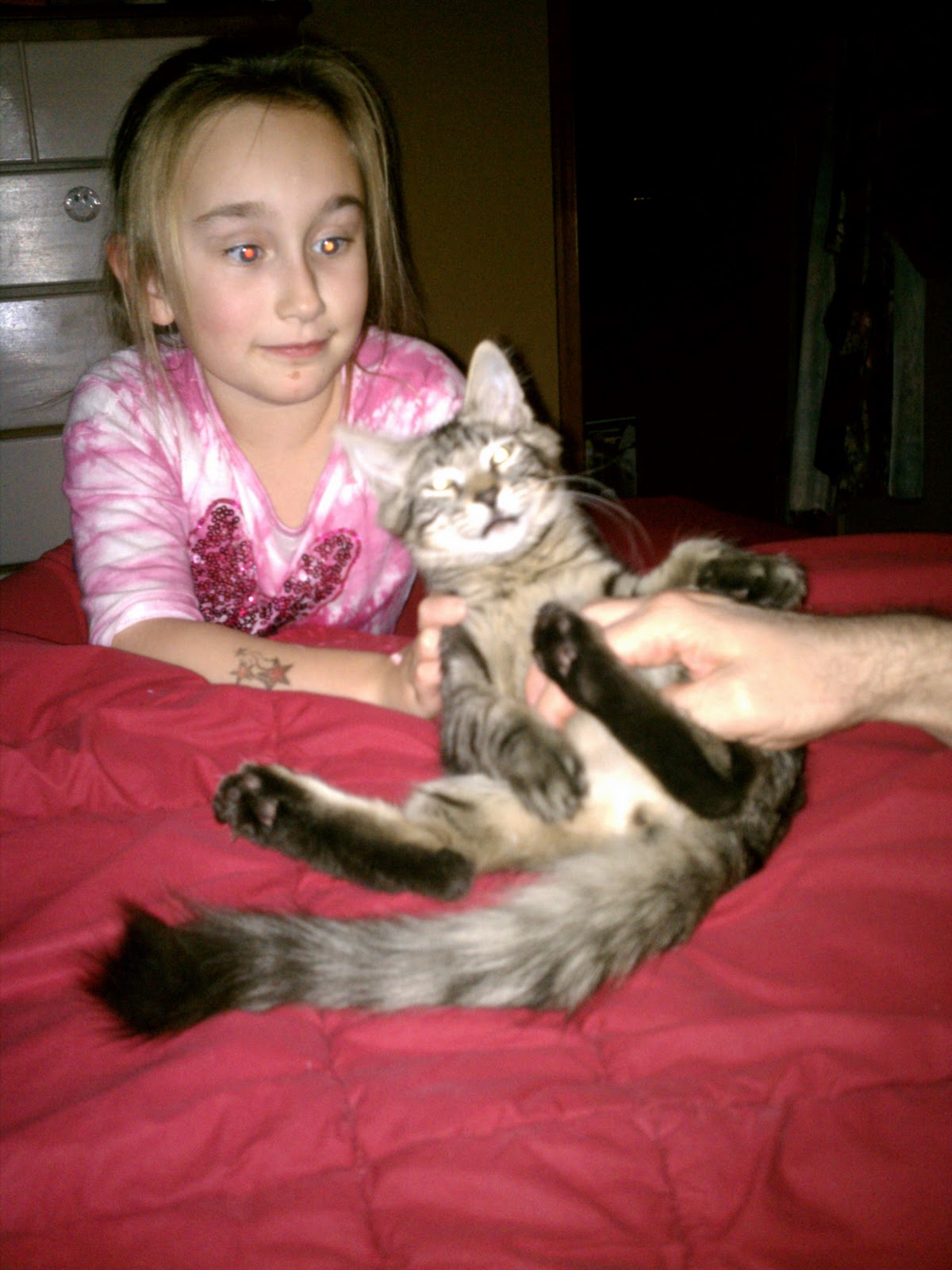 I love the red eyes here. It makes my daughterlook very demonic.