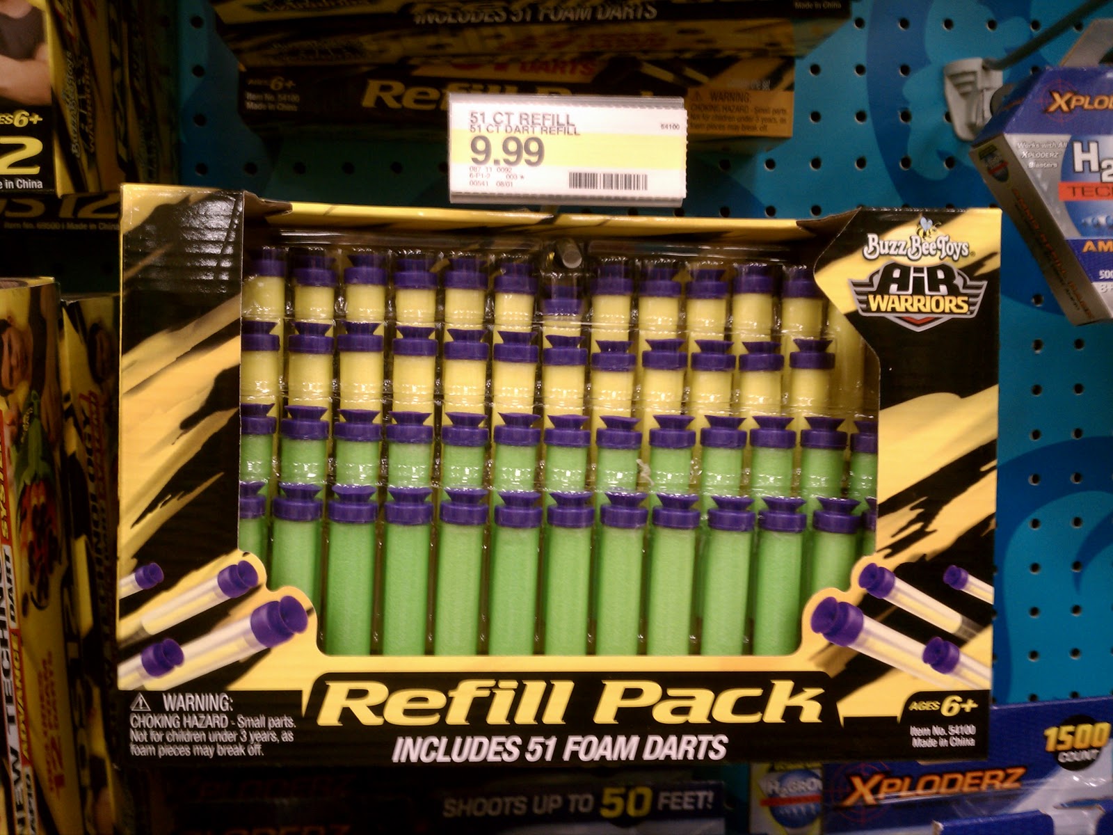 And here's the extra ammo. That's what I'm talking about. I'll foam dart their little bushy tails all the way to the fence. (That needs to go in a Bubba book.)
