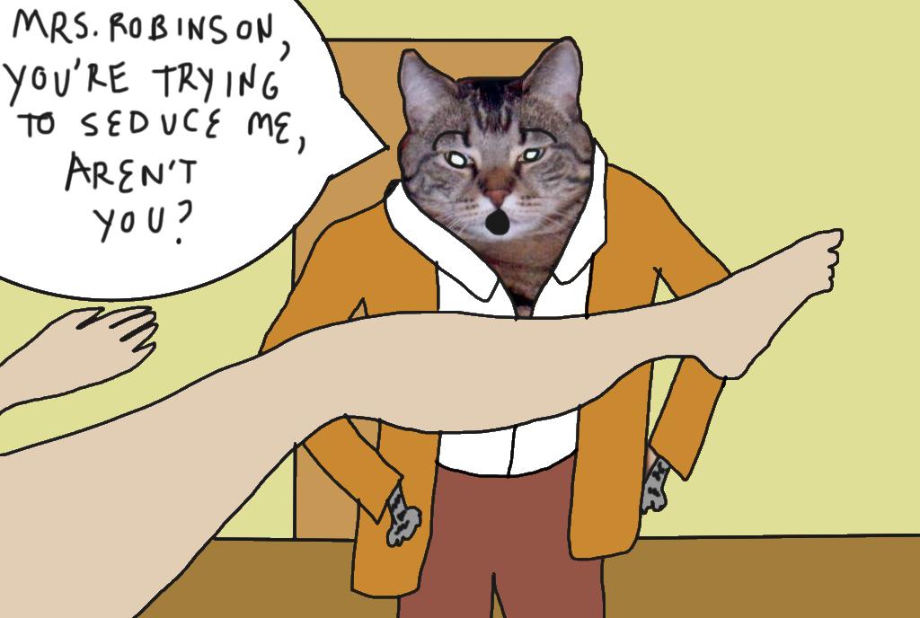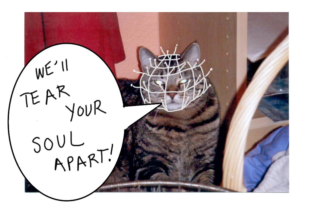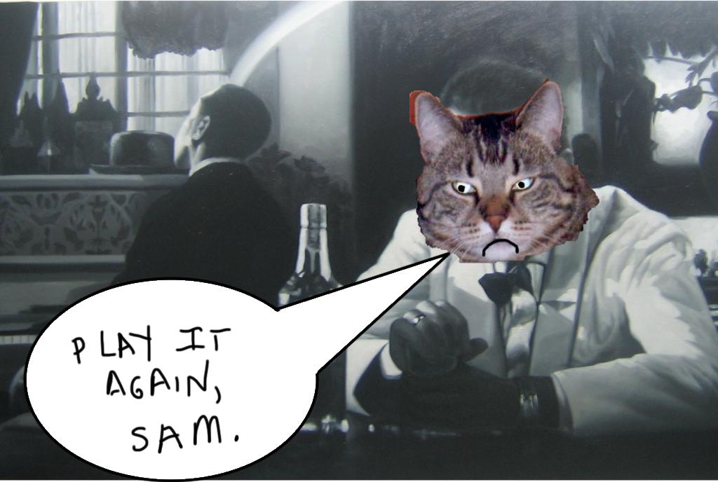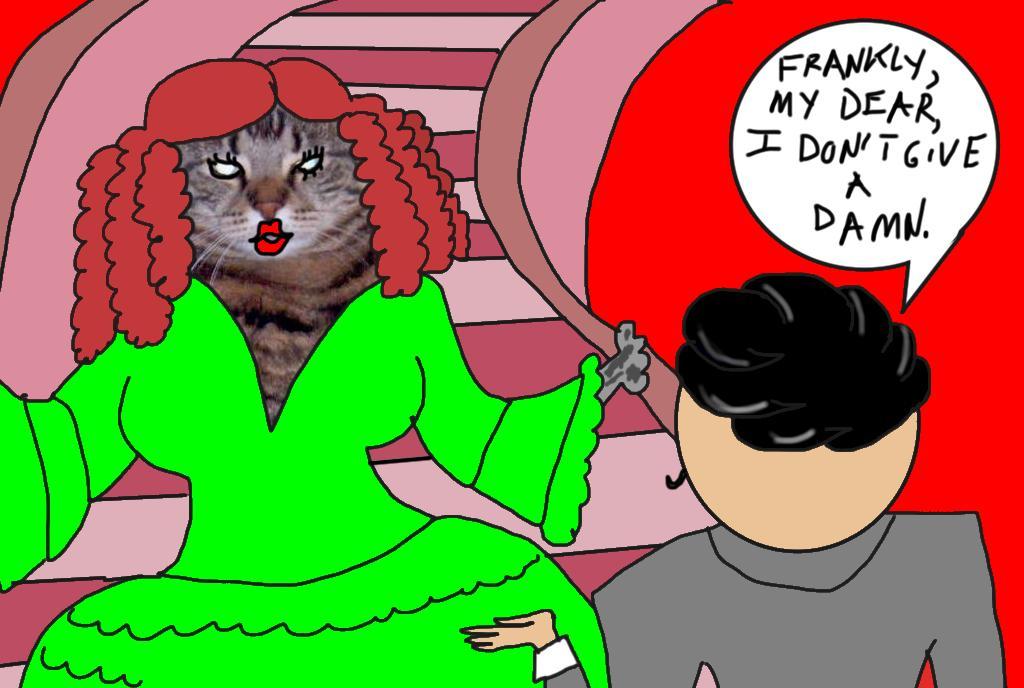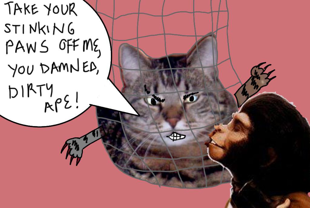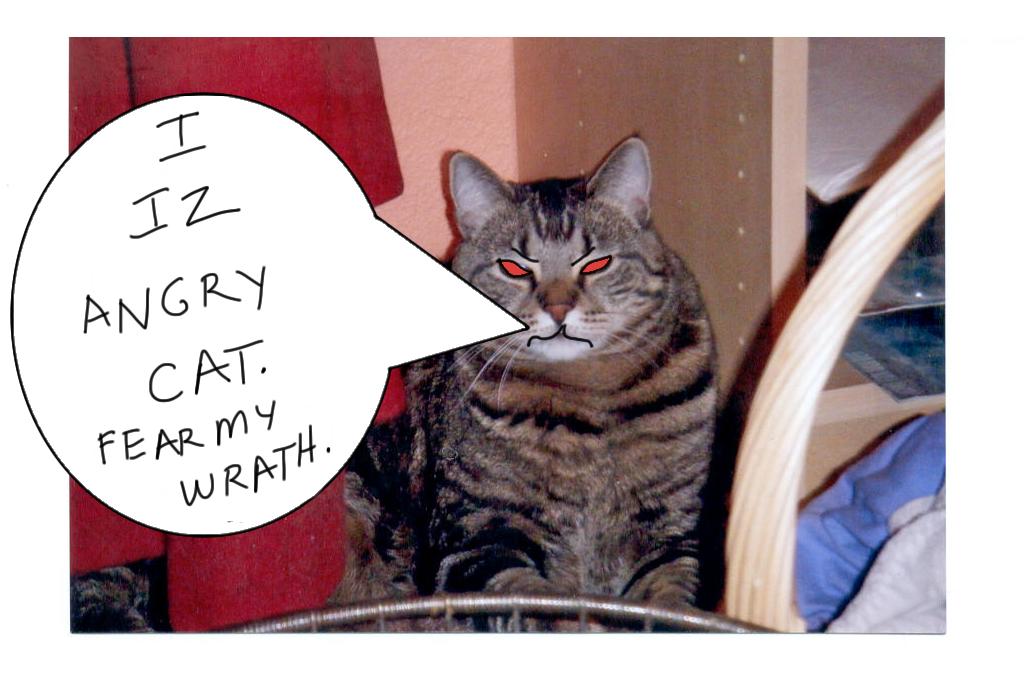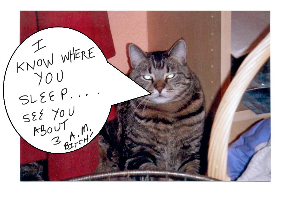 For those of you who aren't up to speed on the Harrowing Case of the Jeered Animal, read 'Things I CANNOT Blog About OR How I've Been Repressed,' and then 'The Dissing of My Sister's Cat OR How It Sounded Like a Challenge.' Basically I'm having way too much fun at the expense of my sister's beloved antisocial pet. Oh, so what the hell.