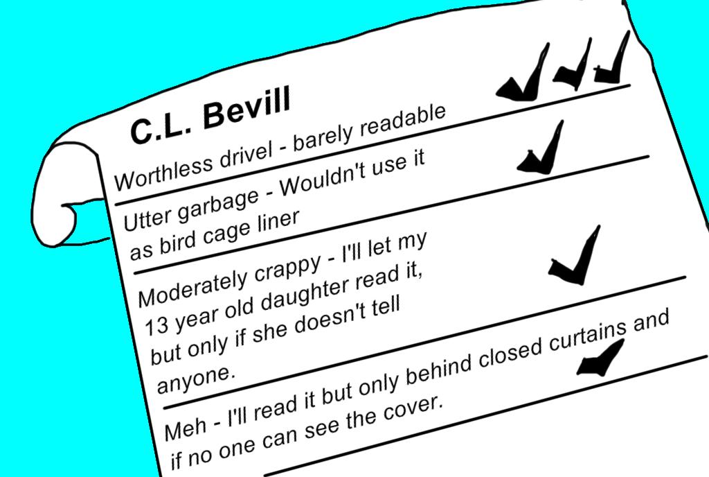 Here is a recent review from a satisfied reader (You know, the reviews I'm not supposed to look at, comment on, even glance at, or rant about in a demeaning manner. Those reviews, yes.) (But this was a happy review. C.L. Bevill = Good writer. Yea! C.L. Bevill! This review makes me want to spin through an alpine meadow singing, 'The hills are alive with the sound of...music,' or something like that. Maybe it makes me want to spin through an alpine meadow singing, 'You shook me all night long.' Yes, that's more the picture I'm looking for.) (And it reminds me that recently a mommy friend told me that her four year old daughter LOVES, LOVES, LOVES the movie, The Sound of Music, and has watched everyday for the last month. Good movie but my brain would have rotted into mush. When Cressy was that age we watched Wall-E for six weeks straight and my brains did turn into mush. Seriously, even zombies weren't interested.)