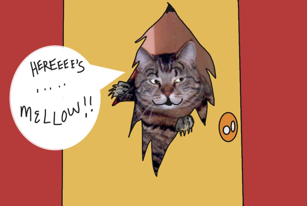 Recently I ridiculed and mocked my sister's cat, Mellow. (I was laughing with the cat.) Although I did tell the truth about said animal, there was some underlying gratifying indulgence in illustrating the feline in funny poses and addlepated movies. That being stated, I feel compelled, as I often do, to do some more! Yea! Illustration!