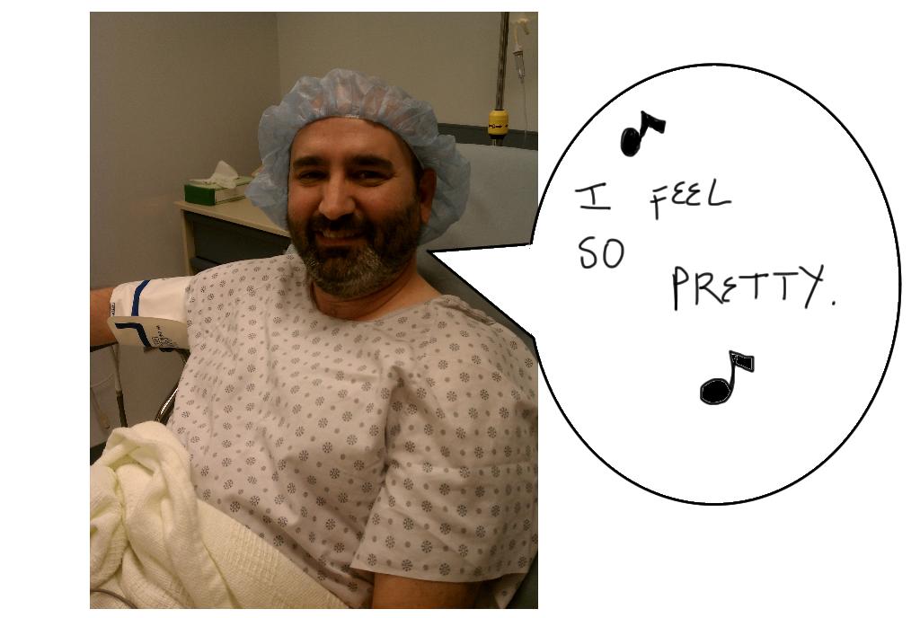 HIM rolled in five minutes later with a goofy smile on his face. (Yes, Virginia, there is a sedative.) More hilarity ensued.