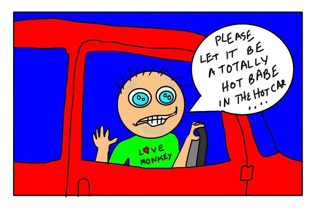 The moment before utter despair set in in a teenage boy'sheart. Poor kid.There was not a hot babe driving it. There was a short, middle aged Fat Woman driving it. His little teenage heart was immediately broken. You could see it in his face. He was well and truly crestfallen. This was the moment in time when I realized that I shouldn't be driving an antique sports car anymore. (That and the fact that every time it broke it needed a minimum of $100 to fix it.)