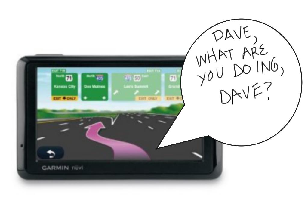 At one point in time it told me to turn left on a one-way street, going the wrong way. There was a lovely incident where the Garmin was telling me to do a U-turn on a freeway that was, well, very well populated by vehicular occupation. By the time I got to the VA hospital I was a nervous wreck and I was lucky I hadn't caused one. (There's one guy in a Lincoln Continental who's probably still swearing a blue streak about me. He looked like he was ready to stop his car and beat me with his shoe or maybe his wife. But hey, the good part was that our cars didn't actually make contact, so it's all gravy.)