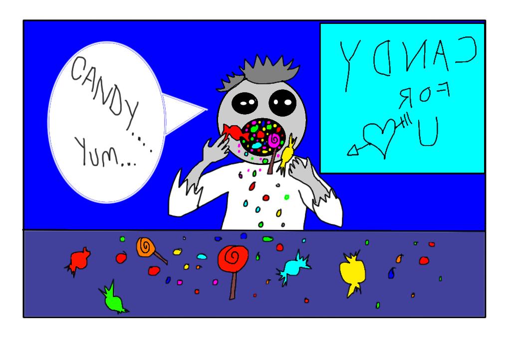 So one night when the moon was full and the candy store was empty, the candy zombie came out.