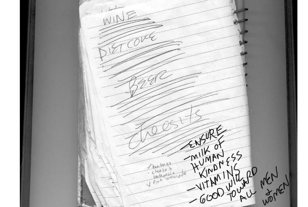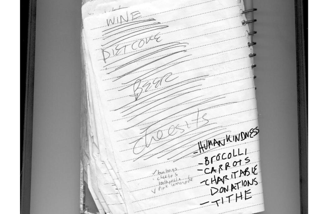 But here's the thing. (There's always a thing.) HIM hadn't remembered to take two steps to my left and especially hadn't remembered to reach out to the little notepad that is my combined list/things-to-do-JOURNAL-of-DOOM (It rules my life. HIM will probably bury it with me.) which was a maximum of three feet away from where he was blithely reminding me to not to forget his stuff for his benefit. HIM didn't unclip the pen that is on the spiral part of the notepad and he didn't find the last list in the pad, and HIM most certainly DID NOT write the four fucking items down for himself. NO. Nopity. Nope. Nopus mopus.